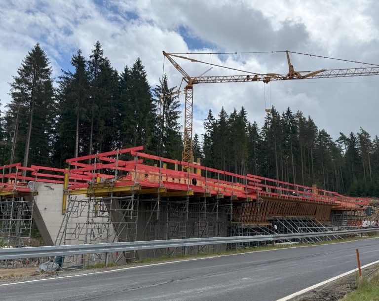 Während sich das Bauwerk in Seitenlage bereits seit 2024 unter Verkehr befindet, erfolgt aktuell die Herstellung der endgültigen Pfeiler. Auch die ersten Verschübe des zweiten Überbaus haben bereits stattgefunden.