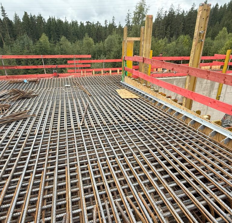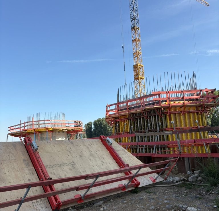 Derzeit befindet sich der Bau der drei Tiefgaragengeschosse in vollem Gange. Die Baugrube wurde zuvor vollständig mit einer überschnittenen Bohrpfahlwand gesichert, die später als Außenwand der Tiefgarage genutzt wird. Eine besondere technische Ausführung: Die Geschossdecken der Tiefgarage werden über Auflagertaschen direkt an die unbewehrten Bohrpfähle angeschlossen. Wir freuen uns, an der Umsetzung dieses attraktiven Stadtquartiers beteiligt zu sein und werden über den weiteren Baufortschritt berichten.