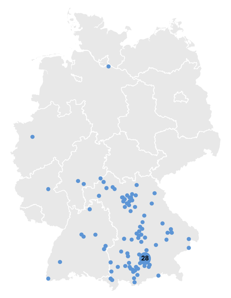 Mit Freude blicken wir auf die Deutschlandkarte unserer Projekte, die wir dieses Jahr in den Bereichen Hoch-, Brücken- und Tunnelbau bearbeitet haben und stellen fest, dass wir auch außerhalb unserer "Heimatregion München" viele tolle Projekte in der statisch-konstruktiven Prüfung begleiten durften. Wir freuen uns darauf, im neuen Jahr weitere Punkte auf diese Karte zu setzen und überregional unsere Expertise erfolgreich einzubringen.